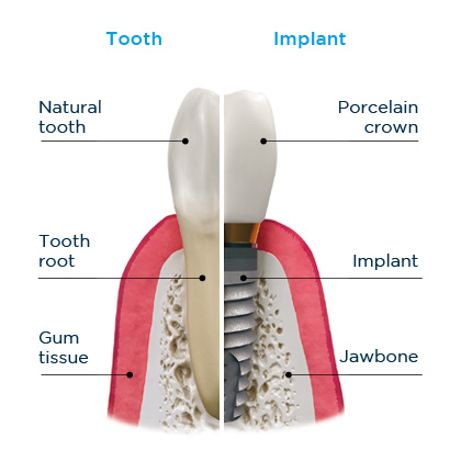 A dental implant consists of a metal, screwlike post that acts like a root of a tooth and it holds a prosthetic crown or bridge. Dental implants may be an option for people who have lost one or more teeth due to gum disease, an injury, or some other reason and who prefer not to wear dentures.
